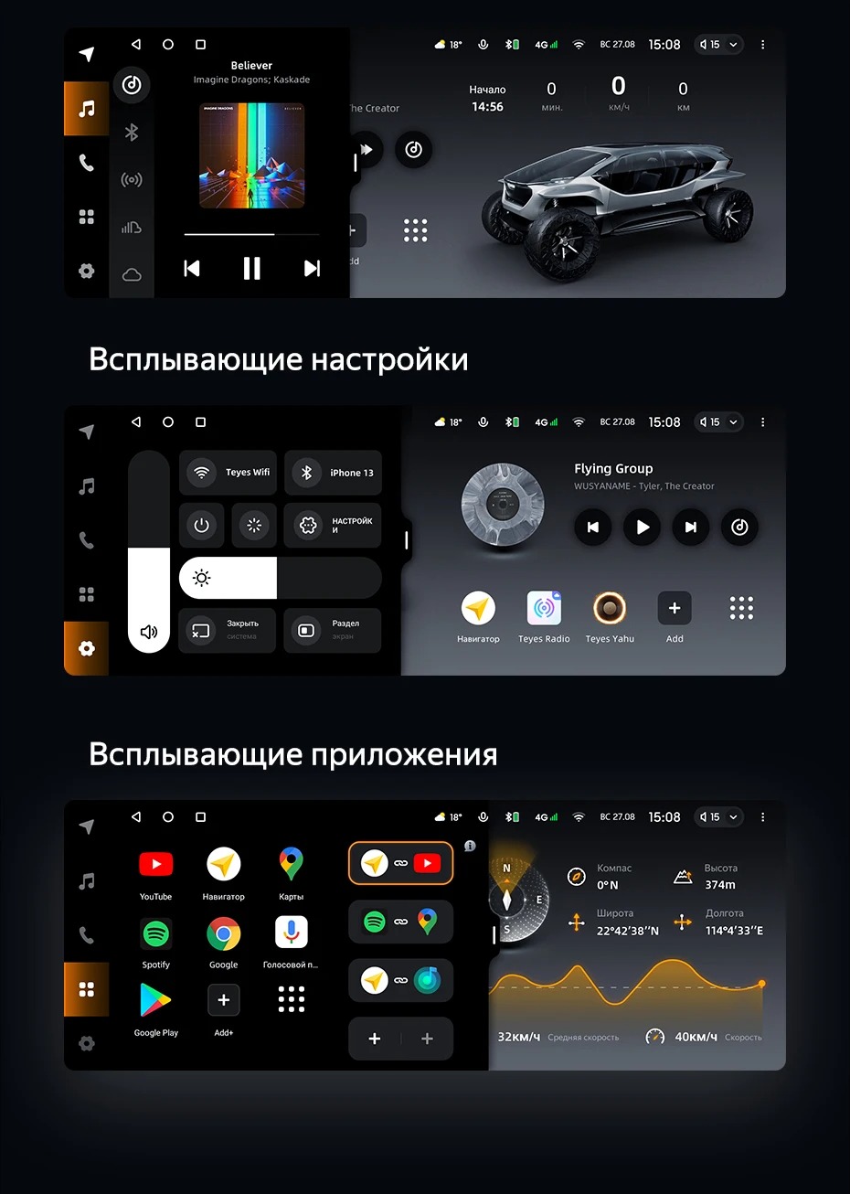 TEYES CC4 Pro 13” 1 DIN — не просто большой экран, а топовая версия с функциями поворота экрана! Универсальная поворотная магнитола, где фишка не только в размере, а в уровне с...