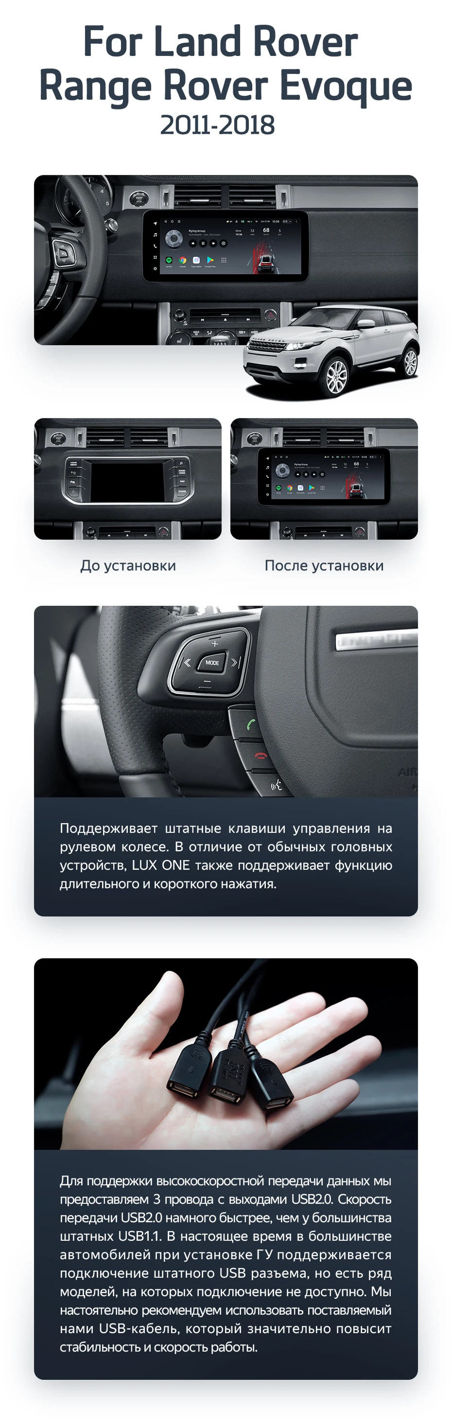 Готовый установочный комплект для магнитолы Land Rover Range Rover Evoque (2011-2018) Тип-B 12,3 дюймов в штатное место, включает переходную рамку и проводку.