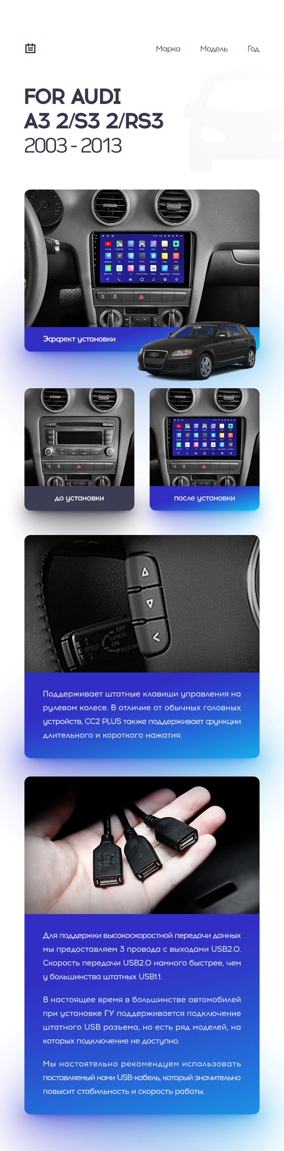 Штатная магнитола Teyes CC2L Plus 1/16 Audi S3 2 (2006-2012) - купить всего за 16 400 руб. в интернет-магазине в Оренбурге Teyes.com.ru. ✓ Самый лучший выбор мультимедиа ✓ Лучшая замена штатному ГУ ✓ Тел. +7 (800) 775-31-74