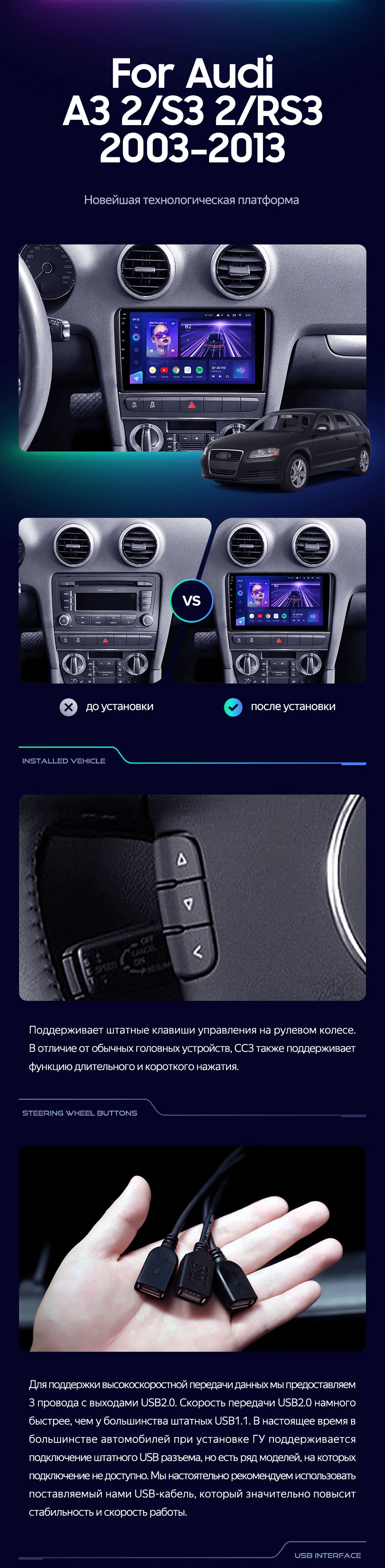 Штатная магнитола Teyes CC4 Pro 8/128 Audi A3 2 8P (2003-2013)
