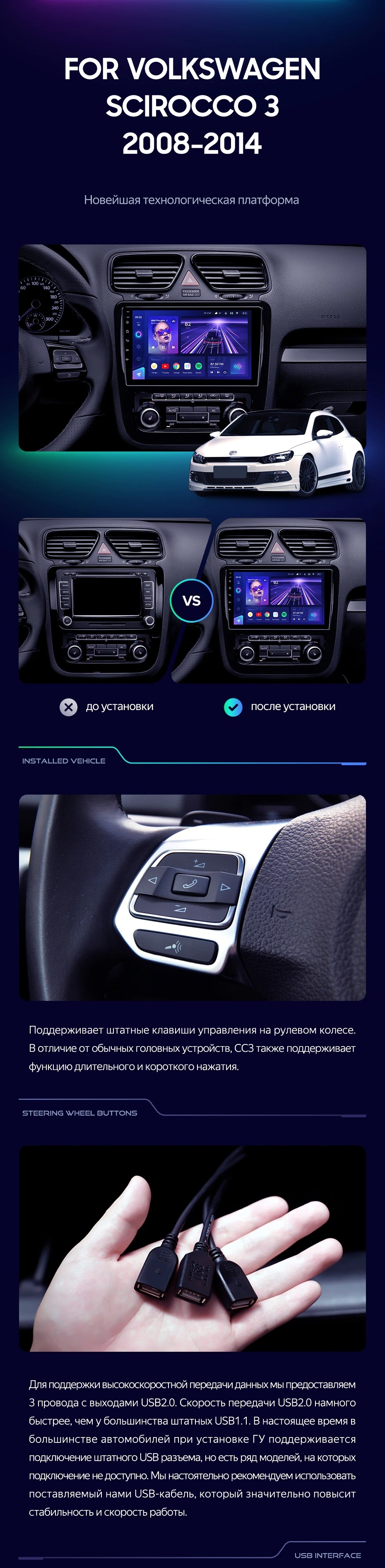Штатная магнитола Teyes CC3 4/32 Volkswagen Scirocco (2008-2014) F2 - купить всего за 35 130 руб. в интернет-магазине в Оренбурге Teyes.com.ru. ✓ Самый лучший выбор мультимедиа ✓ Лучшая замена штатному ГУ ✓ Тел. +7 (800) 775-31-74