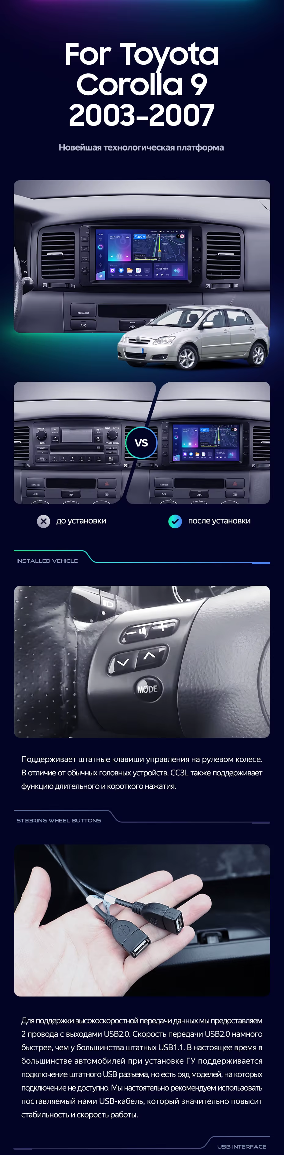Штатная магнитола Teyes CC3 4/32 Toyota Corolla 9 E120 E130 (2003-2007) 7" - купить всего за 32 500 руб. в интернет-магазине в Оренбурге Teyes.com.ru. ✓ Самый лучший выбор мультимедиа ✓ Лучшая замена штатному ГУ ✓ Тел. +7 (800) 775-31-74
