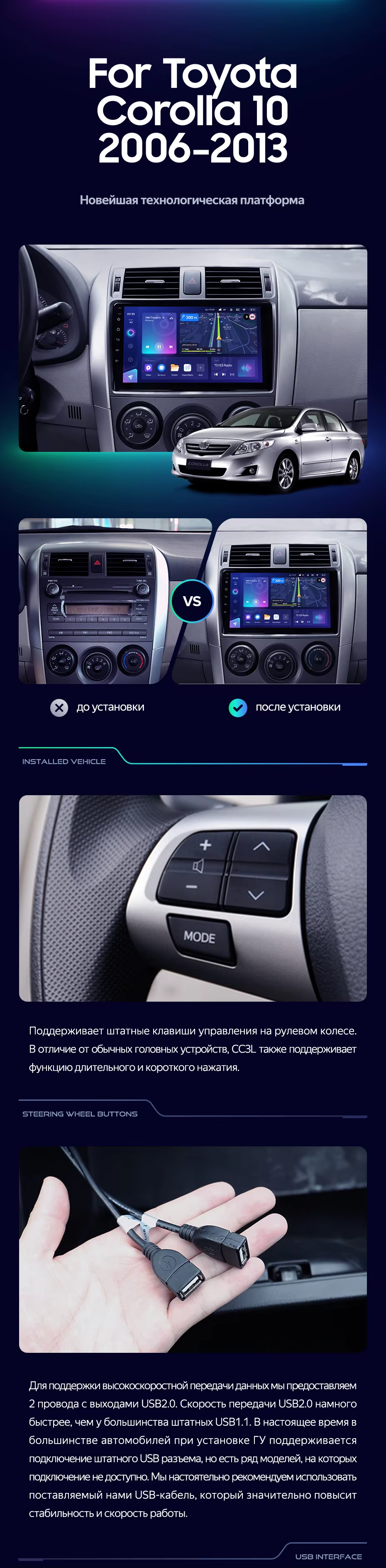 Штатная магнитола Teyes CC3L 4/64 Toyota Corolla 10 E140 E150 (2006-2013) Тип-B - купить всего за 30 020 руб. в интернет-магазине в Оренбурге Teyes.com.ru. ✓ Самый лучший выбор мультимедиа ✓ Лучшая замена штатному ГУ ✓ Тел. +7 (800) 775-31-74