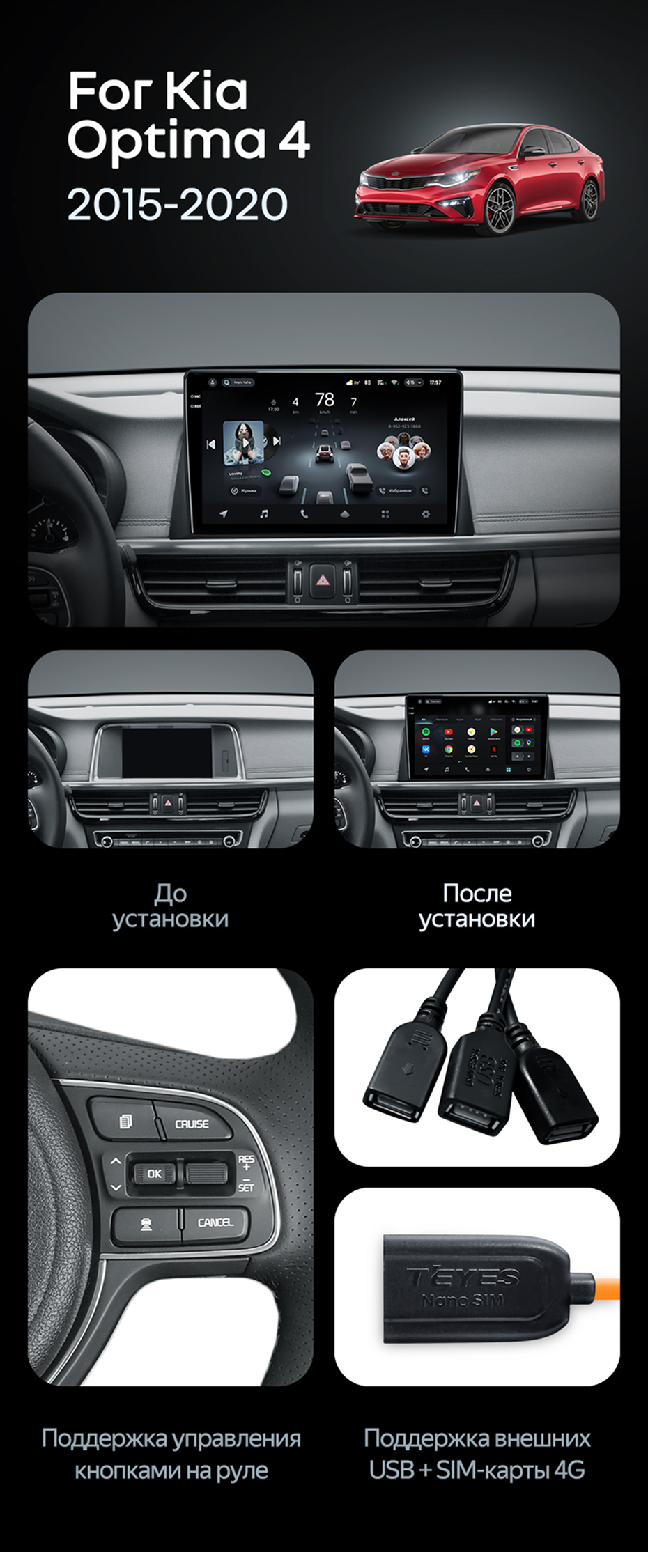 Штатная магнитола Teyes CC4 6/64 Kia Optima 4 JF (2015-2020) Тип-B - купить всего за 49 040 руб. в интернет-магазине в Оренбурге Teyes.com.ru. ✓ Самый лучший выбор мультимедиа ✓ Лучшая замена штатному ГУ ✓ Тел. +7 (800) 775-31-74