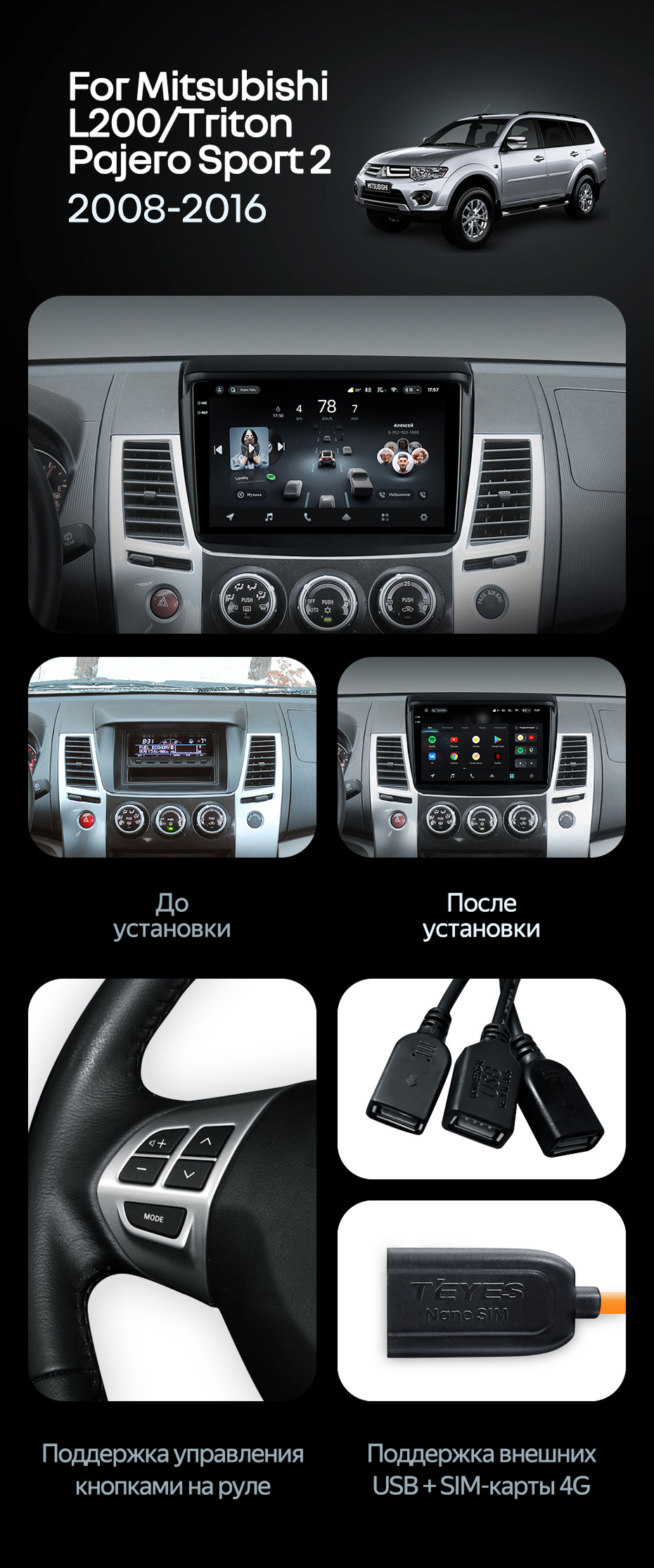Штатная магнитола Teyes CC4 6/64 Mitsubishi L200 (2008-2016) - купить всего за 43 550 руб. в интернет-магазине в Оренбурге Teyes.com.ru. ✓ Самый лучший выбор мультимедиа ✓ Лучшая замена штатному ГУ ✓ Тел. +7 (800) 775-31-74