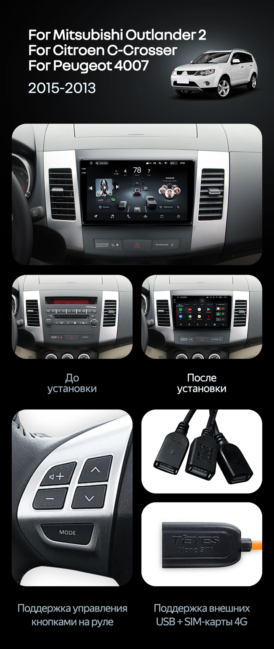 Штатная магнитола Teyes CC4 6/64 Mitsubishi Outlander 2 (2005-2011) Тип-B - купить всего за 44 840 руб. в интернет-магазине в Оренбурге Teyes.com.ru. ✓ Самый лучший выбор мультимедиа ✓ Лучшая замена штатному ГУ ✓ Тел. +7 (800) 775-31-74