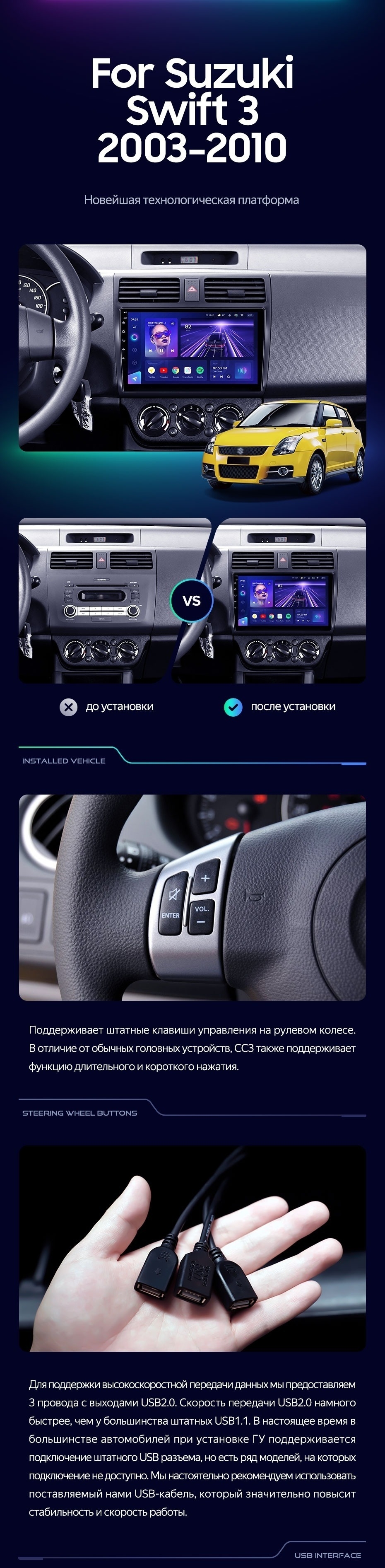 Штатная магнитола Teyes CC4 8/128 Suzuki Swift 3 (2003-2010) - купить всего за 52 600 руб. в интернет-магазине в Оренбурге Teyes.com.ru. ✓ Самый лучший выбор мультимедиа ✓ Лучшая замена штатному ГУ ✓ Тел. +7 (800) 775-31-74