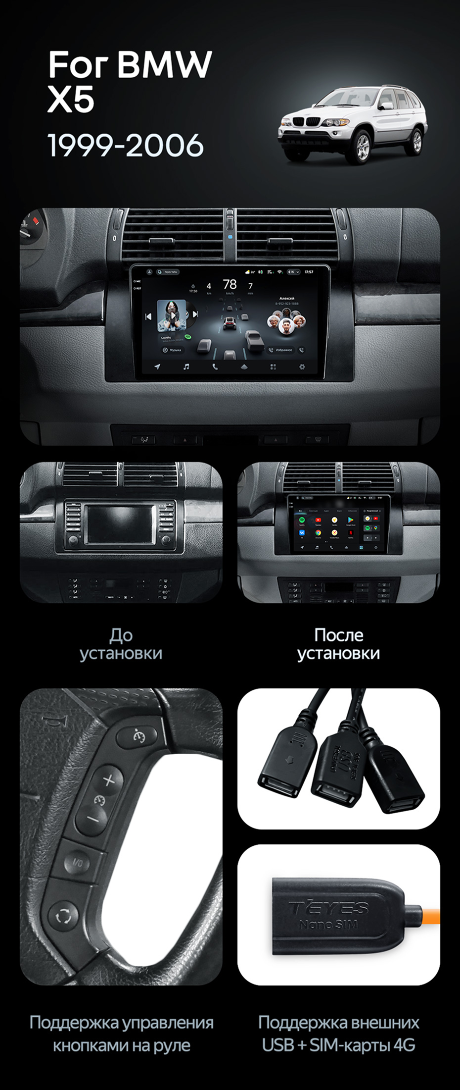 Штатная магнитола Teyes CC4 Pro 12/256 BMW X5 E39 E53 (1999-2006) - купить всего за 69 500 руб. в интернет-магазине в Оренбурге Teyes.com.ru. ✓ Самый лучший выбор мультимедиа ✓ Лучшая замена штатному ГУ ✓ Тел. +7 (800) 775-31-74