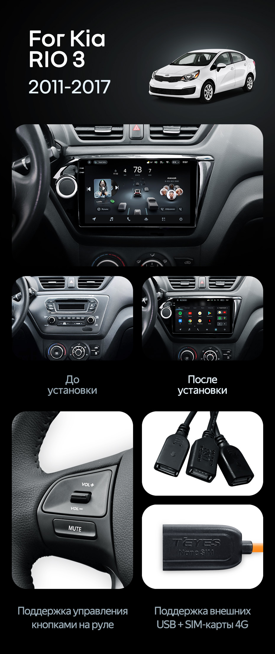 Штатная магнитола Teyes CC4 Pro 8/128 Kia Rio 3 (2011-2017) (13") - купить всего за 67 470 руб. в интернет-магазине в Оренбурге Teyes.com.ru. ✓ Самый лучший выбор мультимедиа ✓ Лучшая замена штатному ГУ ✓ Тел. +7 (800) 775-31-74
