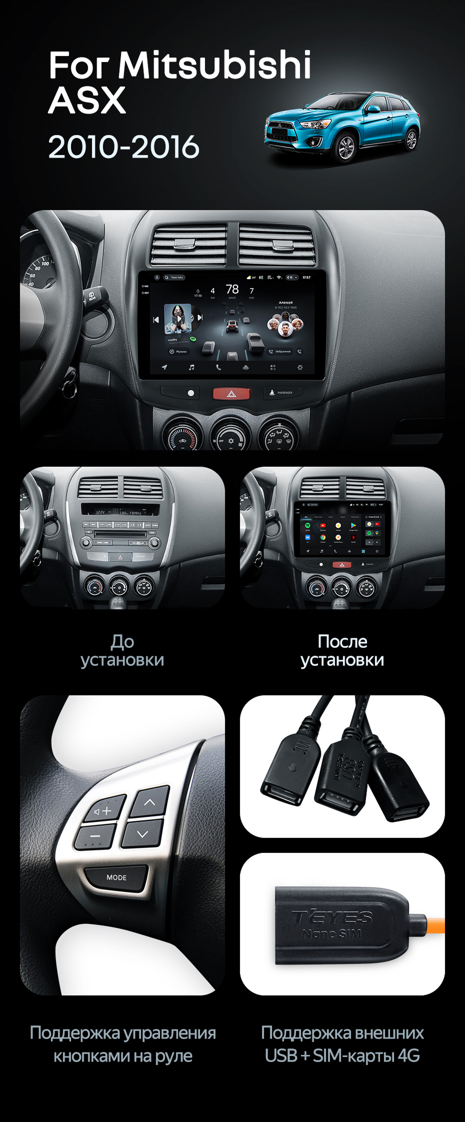 Штатная магнитола Teyes CC4 Pro 8/128 Mitsubishi ASX 1 (2010-2016) Тип-B - купить всего за 59 250 руб. в интернет-магазине в Оренбурге Teyes.com.ru. ✓ Самый лучший выбор мультимедиа ✓ Лучшая замена штатному ГУ ✓ Тел. +7 (800) 775-31-74