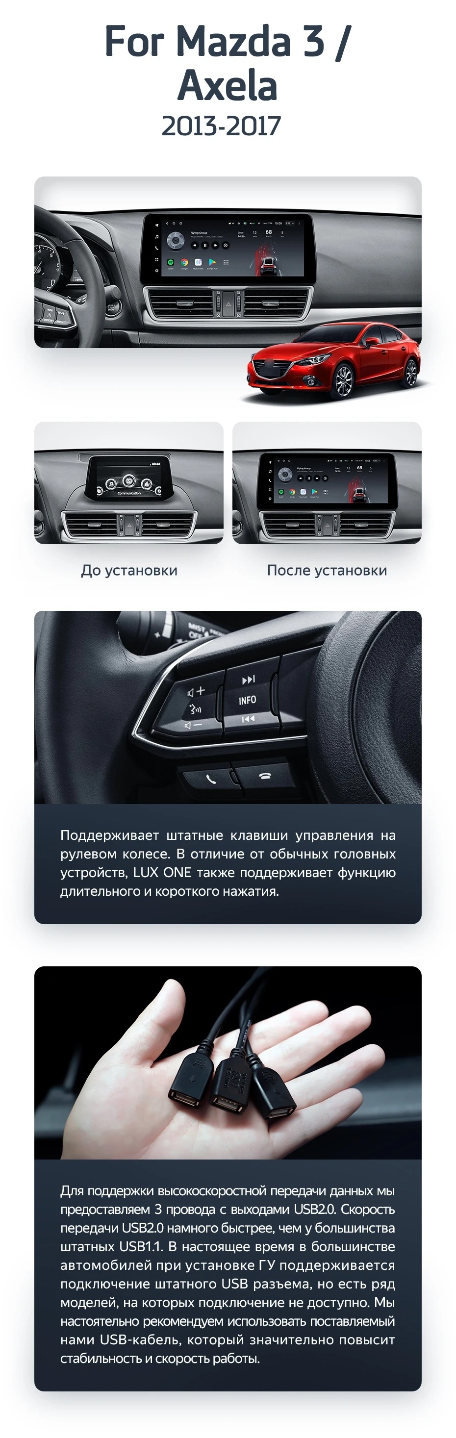 Штатная магнитола Teyes LUX ONE 4/64 Mazda 3 BM (2013-2017) Тип-B - купить всего за 41 800 руб. в интернет-магазине в Оренбурге Teyes.com.ru. ✓ Самый лучший выбор мультимедиа ✓ Лучшая замена штатному ГУ ✓ Тел. +7 (800) 775-31-74