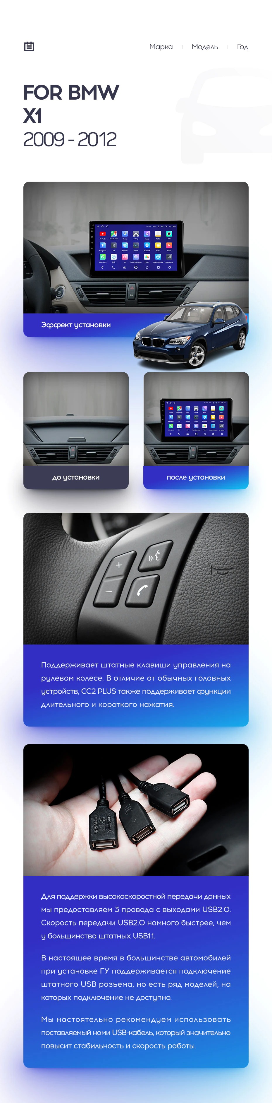 Полный комплект установки магнитолы Teyes с рамкой и проводкой можно выбрать в каталоге штатных магнитол BMW X1 E84 (2009-2012).