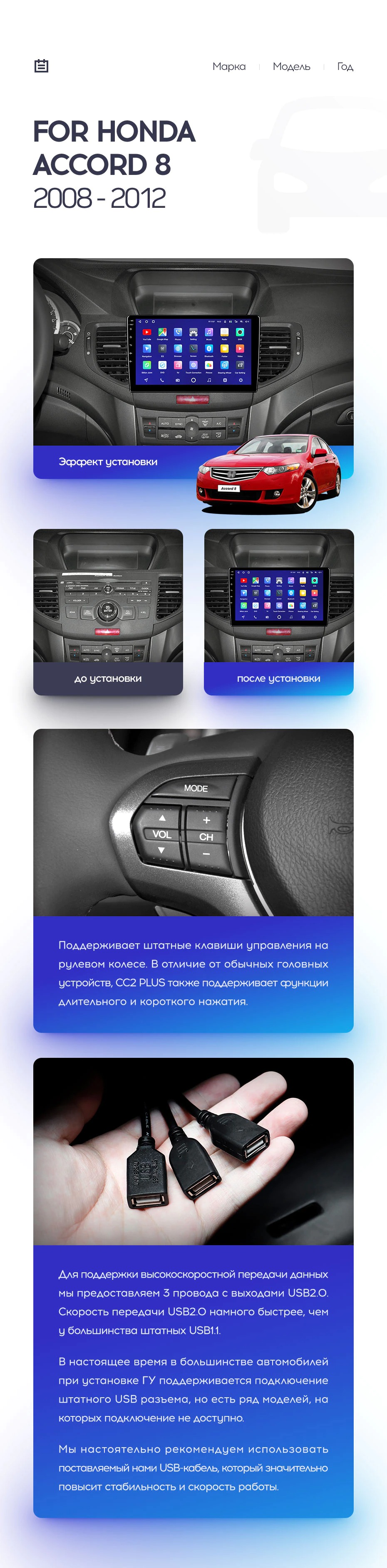 Полный комплект установки магнитолы Teyes с рамкой и проводкой можно выбрать в каталоге штатных магнитол Honda Accord 8 (2008-2012).