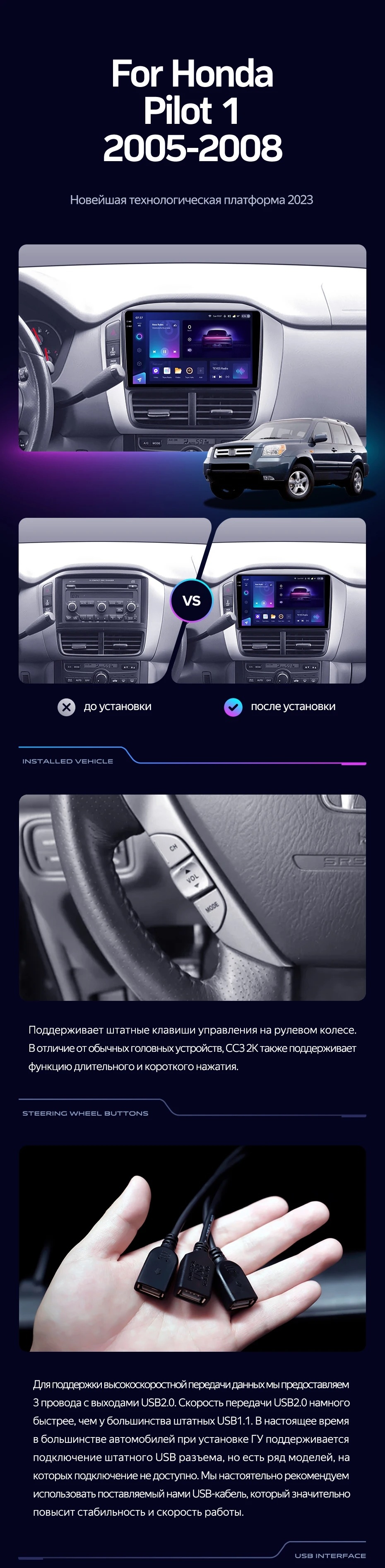 Полный комплект установки магнитолы Teyes с рамкой и проводкой можно выбрать в каталоге штатных магнитол Honda Pilot 1 (2005-2008).