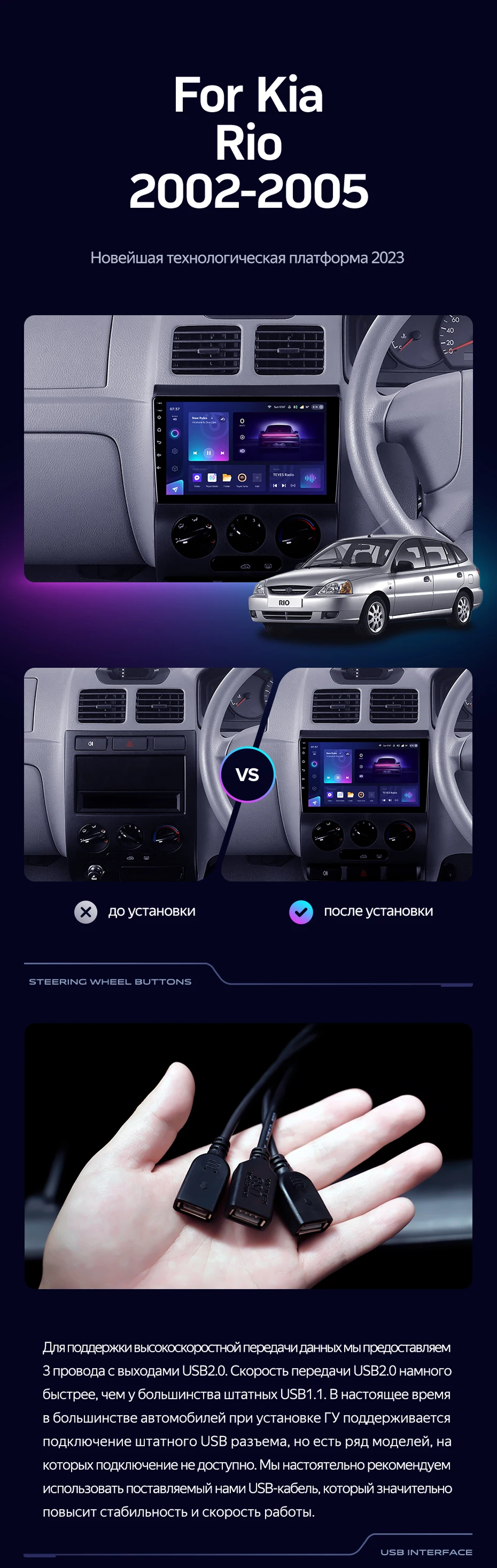 Переходная рамка Kia Rio 1 (2002-2005) (9") - купить всего за 5 500 руб. в интернет-магазине в Оренбурге Teyes.com.ru. ✓ Самый лучший выбор мультимедиа ✓ Лучшая замена штатному ГУ ✓ Тел. +7 (800) 775-31-74