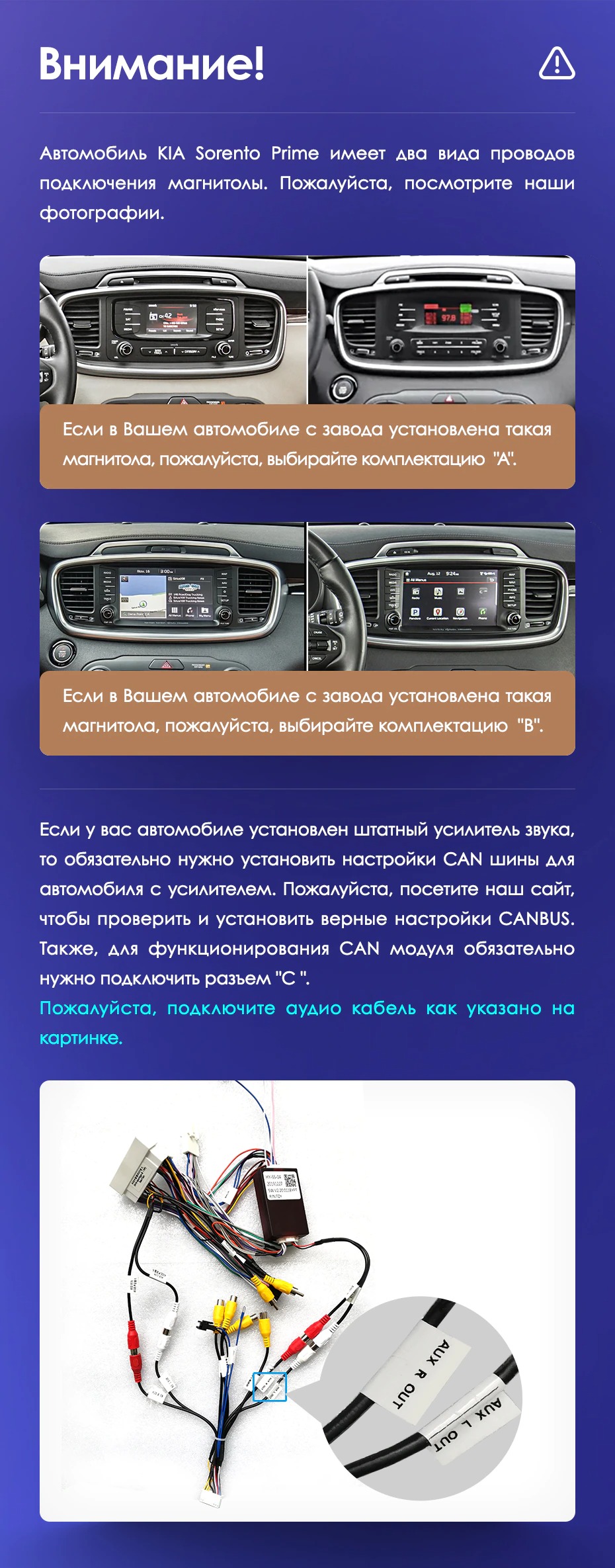 Полный комплект установки магнитолы Teyes с рамкой и проводкой можно выбрать в каталоге штатных магнитол Kia Sorento 3 Prime (2014-2017).